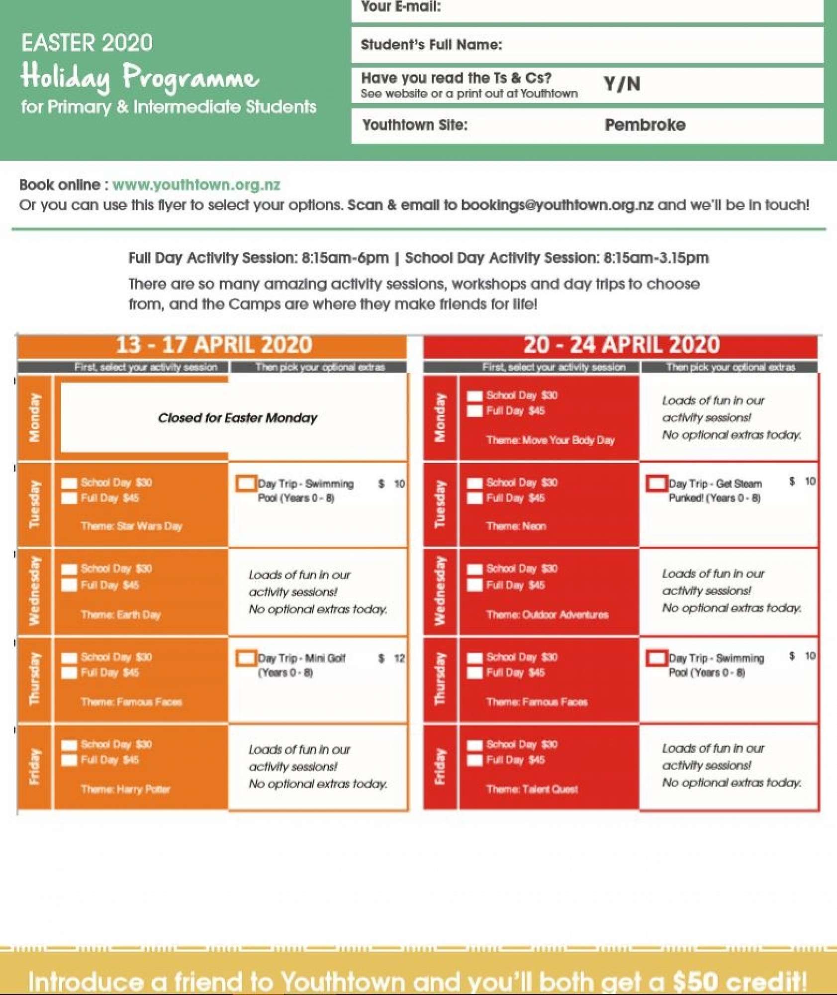 - Youthtown School Holiday Programme - see attached poster.