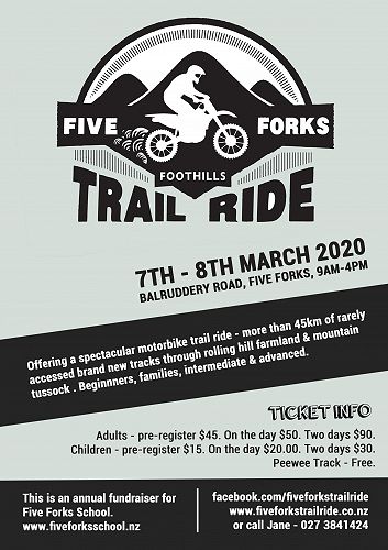 - Five Forks Trail Ride - 7th - 8th March, 2020. See attached poster.