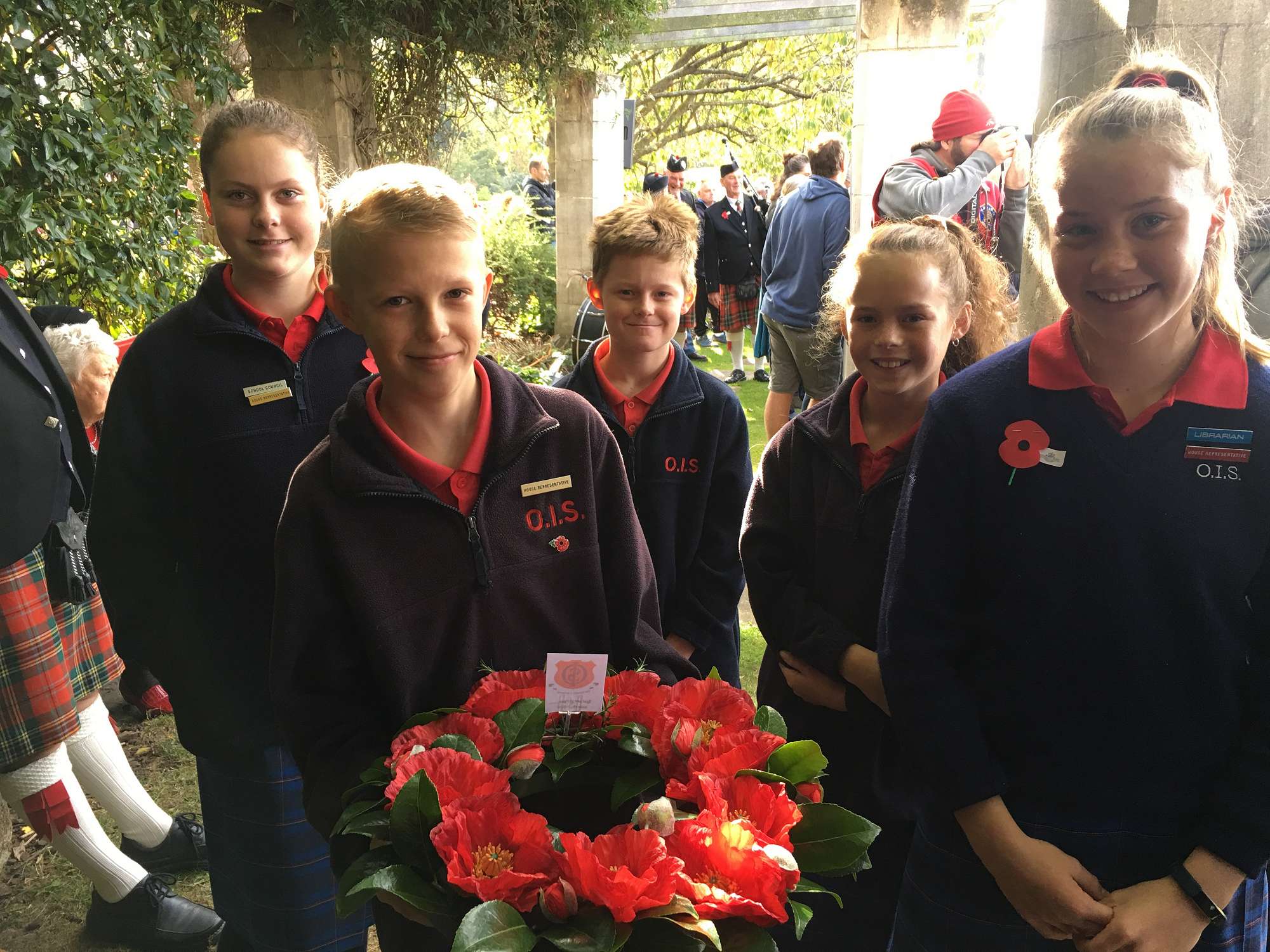 Sophie Notman, Ella Symes, Emily Neal, Baxter Lewis and Arthur Cartlidge represented OIS with dignity and respect at the ANZAC parade laying a wreath at the RSA memorial garden.